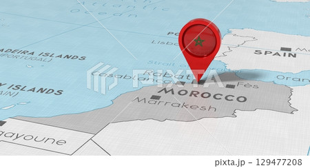 Morocco, Rabat - location pin with national flag on political map - 3D illustration