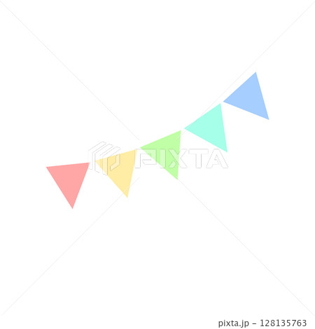 Red and white triangular bunting hanging against a background of bright yellow autumn foliage and sky