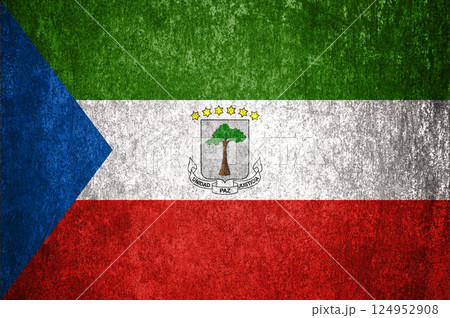 Equatorial Guinea State Flag. Dirty Equatorial Guinea flag on metal surface.