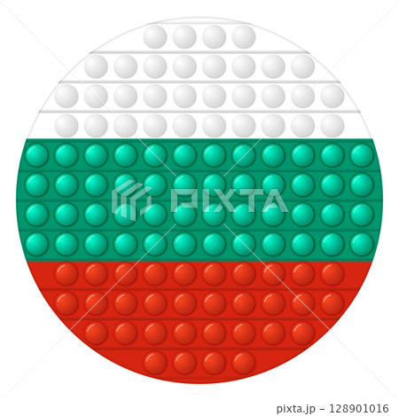 Glass light ball with flag of Bulgaria. Round sphere, template icon. Bulgarian national symbol. Glossy realistic ball, 3D vector illustration. Trendy antistress game pop it, simple dimple. Big bubble