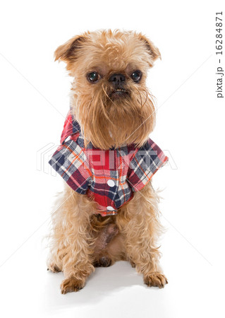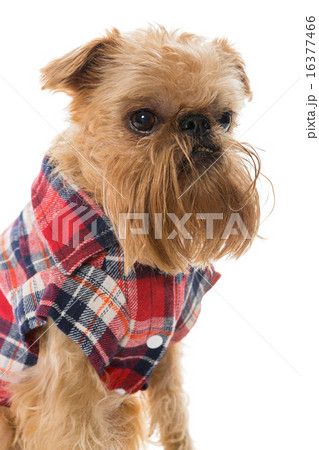 Dog breed Brussels Griffon in flannel shirt