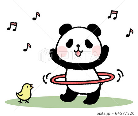 フラフープで遊ぶ笑顔のパンダ