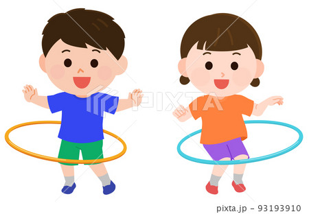 フラフープをする男の子と女の子 イラスト