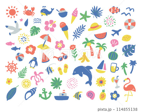 夏・海のイラストセット 南国 旅行 アイコン ビーチ 装飾
