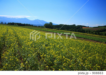 上富良野町の菜の花畑と十勝連峰