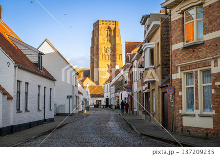 ベルギーの白い村 リッセウェヘの街並みと教会の塔