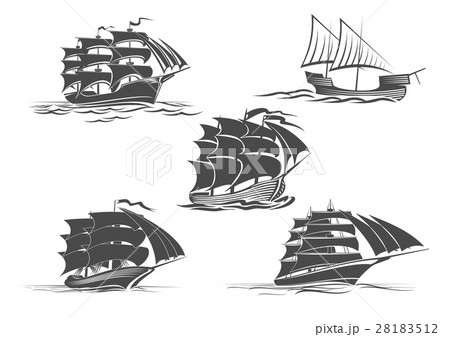 Frigate ship sailing vessel vector isolated icons