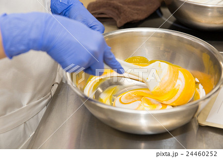 ムースをつくるパティシエの手元
