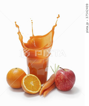 A splash of multi-vitamin juice surrounded by fruit