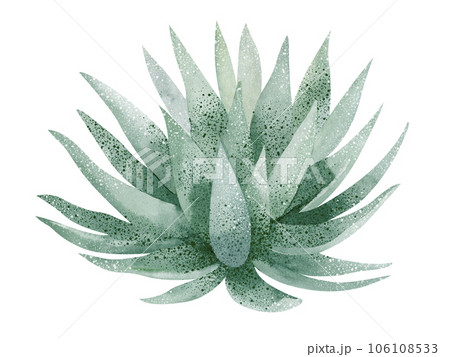 Green Aloe Vera plant, watercolor illustration, hand drawn, botanical painting on isolated white background