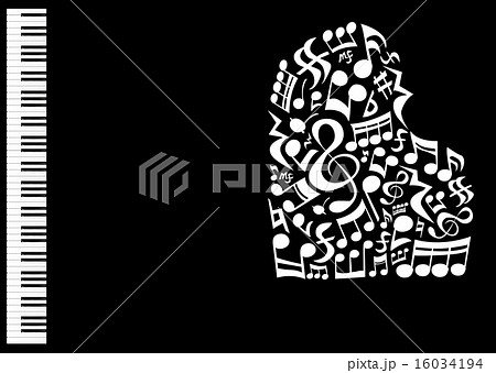 ベクター イラスト ピアノイメージ 金の音符 鍵盤