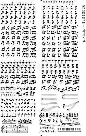 ベクター イラスト デザイン 音楽 音符 花 五線譜 飾り フレーム A3