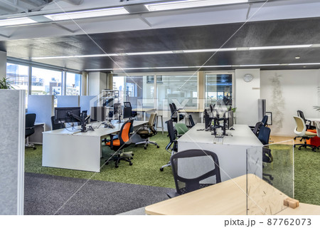 フリーアドレスのオフィスで仕事をするビジネスマンのイメージカット