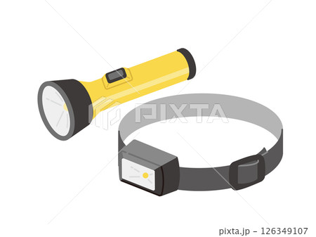 ヘッドライトと懐中電灯のイラスト