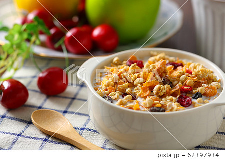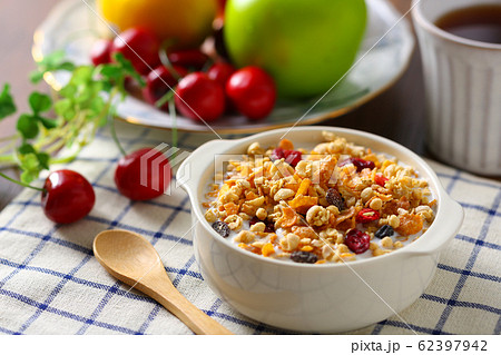 フルーツグラノーラ 朝食イメージ 健康食品 シリアル食品 イメージ素材