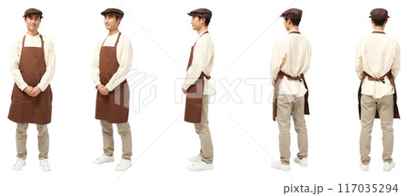 カフェスタッフのエプロン男性の全身人物切り抜き素材