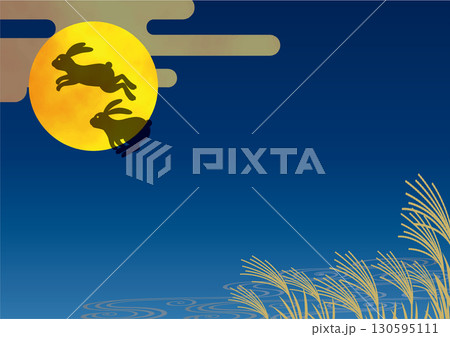 お月見背景、和柄玉、横、イラスト、かわいい、和風、うさぎ
