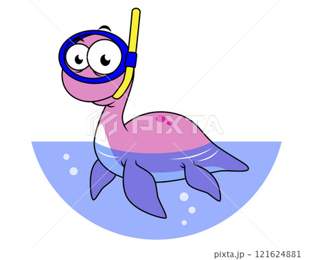 Illustration of a Loch Ness Monster scuba diver.