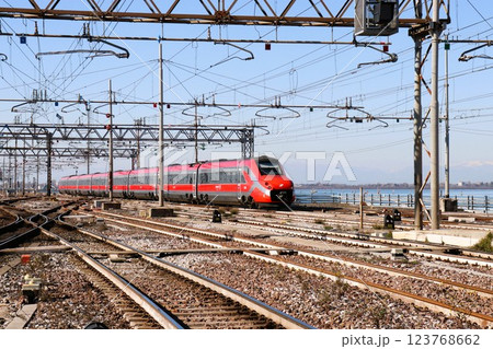 電車特急 フレッチャロッサの到着 サンタルチア駅 ベネチア イタリア