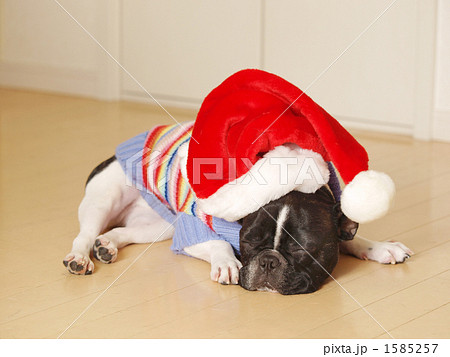 サンタの帽子をかぶったフレンチブル