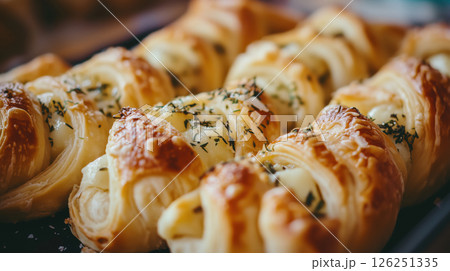 Freshly Baked Cheese Pastries Topped with Herbs