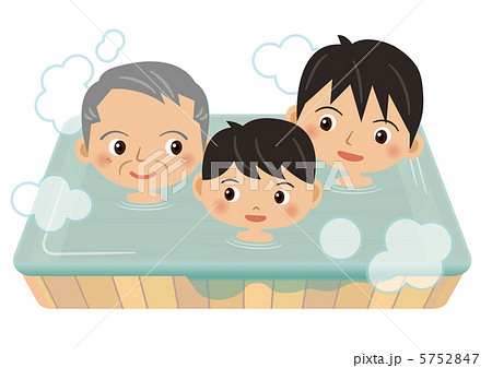湯に浸かる三世代家族