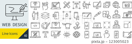 Webデザインに関する線画アイコンセット