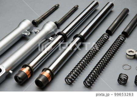 バイクのフロントフォークの分解イメージ