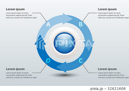 Four topics blue arrow chart 3d paper with circle