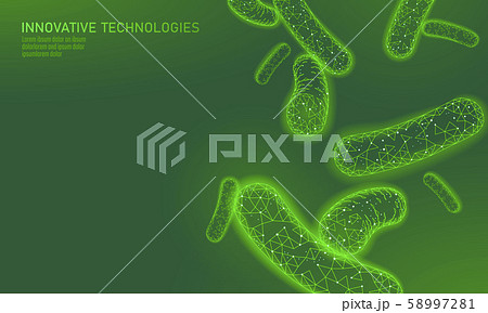 Bacteria 3D low poly green probiotics. Healthy normal digestion flora of human intestine yoghurt