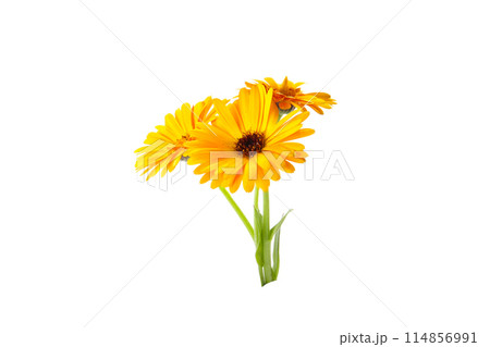カレンデュラの花、白バック