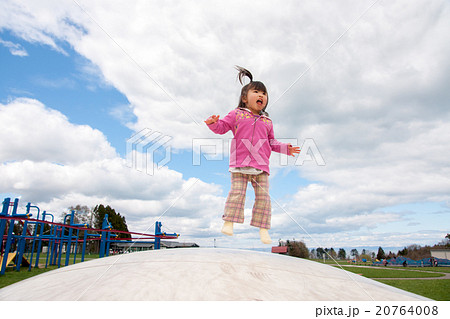 遊具で飛び跳ねる子供