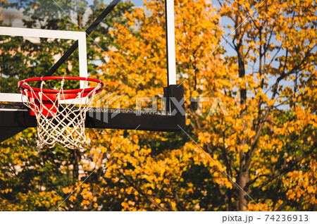 Basketball hoop with net in autumn park
