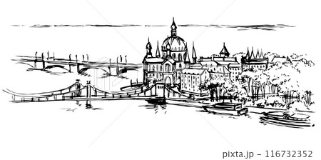 Budapest Travel Illustration, Hungary Tourism Concept, Graphic Art, Drawing Imitation, AI Generative Content