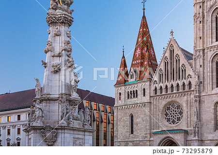 ハンガリー ブダペストのマーチャーシュ聖堂と三位一体の像