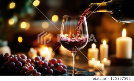 Pouring red wine into a glass