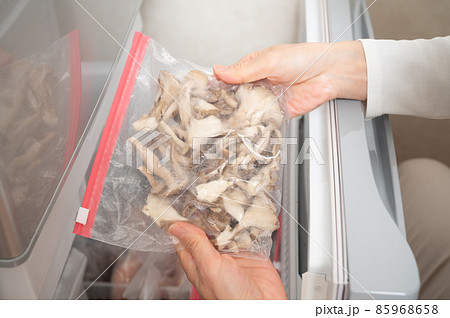冷凍保存しているミックスキノコ耐熱皿に移す