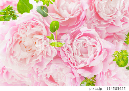 ピンクのピオニーとグリーンの背景