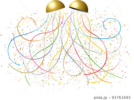 割れたくす玉から飛び出すカラフルな紙テープと紙吹雪