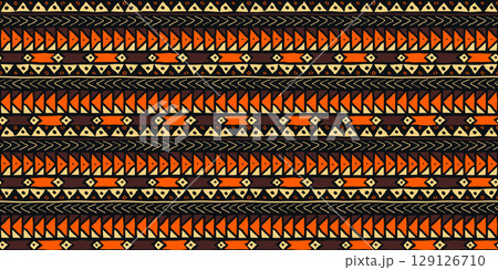 Seamless vector ethnic pattern on black. Bright tribal indian Navajo fabric print. Retro web page fill Aztec seamless native folk wrapping paper texture. Abstract 70s 80s art color background