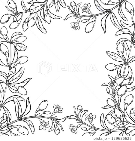 Lemons with leaves circle round composition. Vector Graphic line ink Black and white illustration. For logo, web, package, sticker.