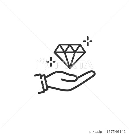 自社の強みや価値をイメージした手のひらとダイヤモンドの線画アイコン (USP・ブランディング)