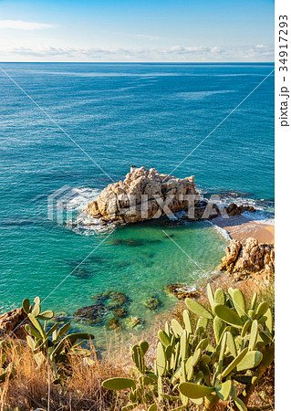 View of the sea coast in Lloret de Mar, Costa Brava, Catalonia, Spain.