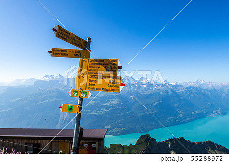 【スイス】 ブリエンツ・ロートホルンの案内板とブリエンツ湖