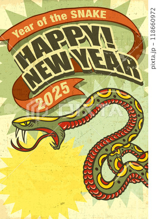 2025年賀状「レトロブリキ看板風デザイン」ハッピーニューイヤー 手書き用スペース付パターン