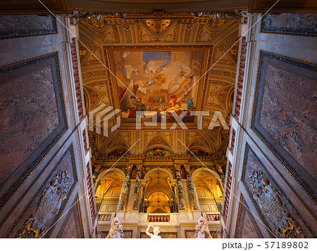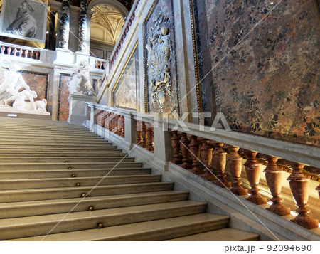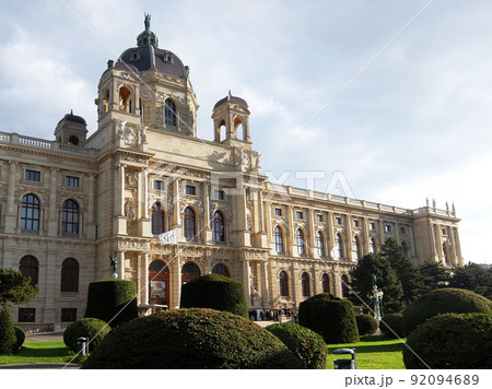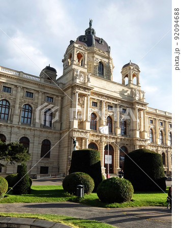 オーストリア、ウィーンの美術史美術館を背景に建つハプスブルク帝国の女帝・マリア・テレジア像