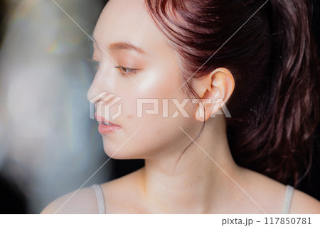 窓の外を見つめる20代日本人女性の横顔