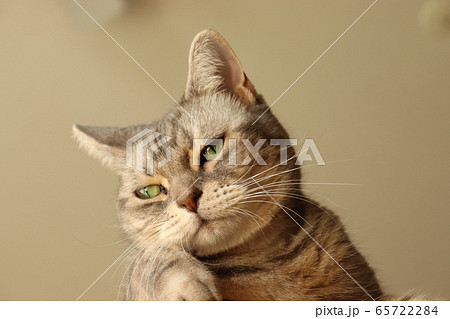 辛そうな表情の猫アメリカンショートヘアブルータビー
