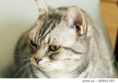 日向ぼっこする猫の横顔アメリカンショートヘアブルータビー