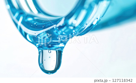 清潔感と潤い感のある青い美容ジェルのしずくのマクロクローズアップ(AI生成画像)